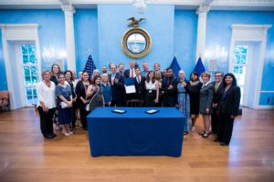 New York City Mayor Bill de Blasio participates in a ceremonial signing with animal advocates to mark the passage of Intro. 1233, banning the use of wild animals in the circus on Thursday, July 27, 20