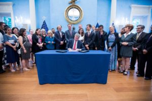 New York City Mayor Bill de Blasio participates in a ceremonial signing with animal advocates to mark the passage of Intro. 1233, banning the use of wild animals in the circus on Thursday, July 27, 20